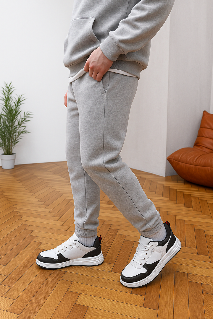 - Footwear Pairing: Shown with white & black sneakers (classic athleisure pairing)