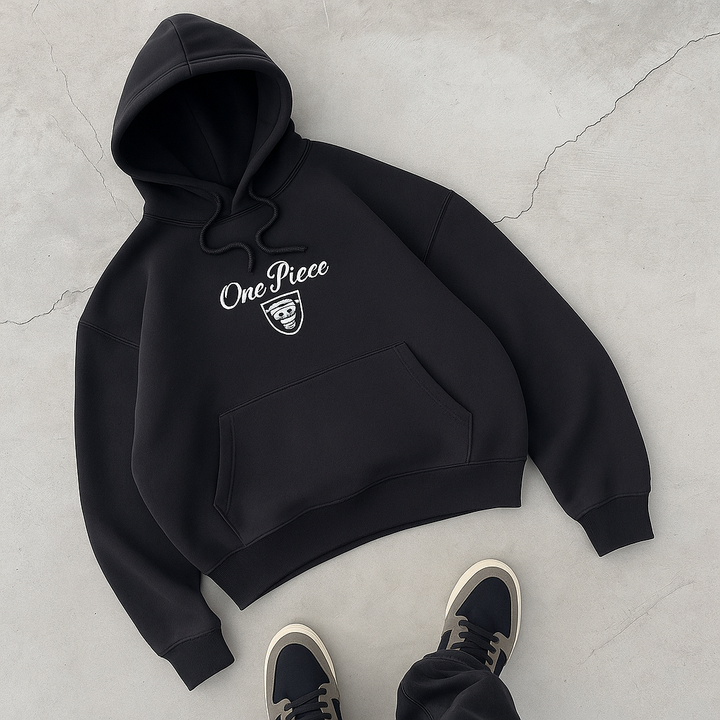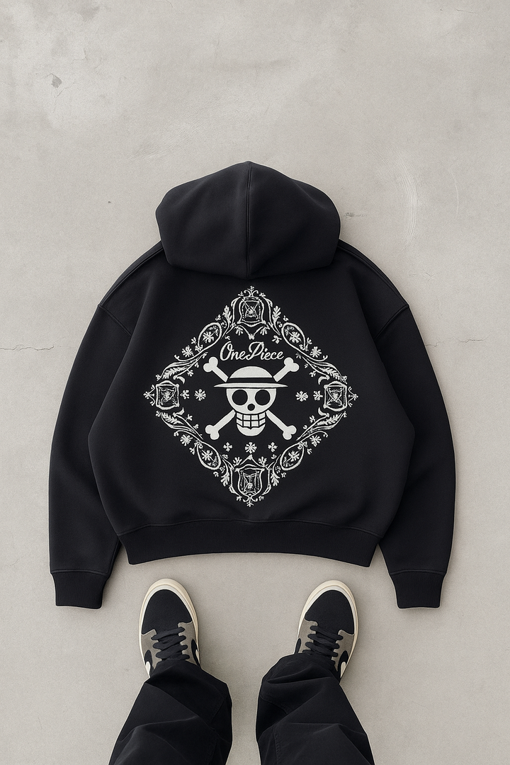 One Piece Skull Embroidered Black Hoodie – Anime Streetwear Edition